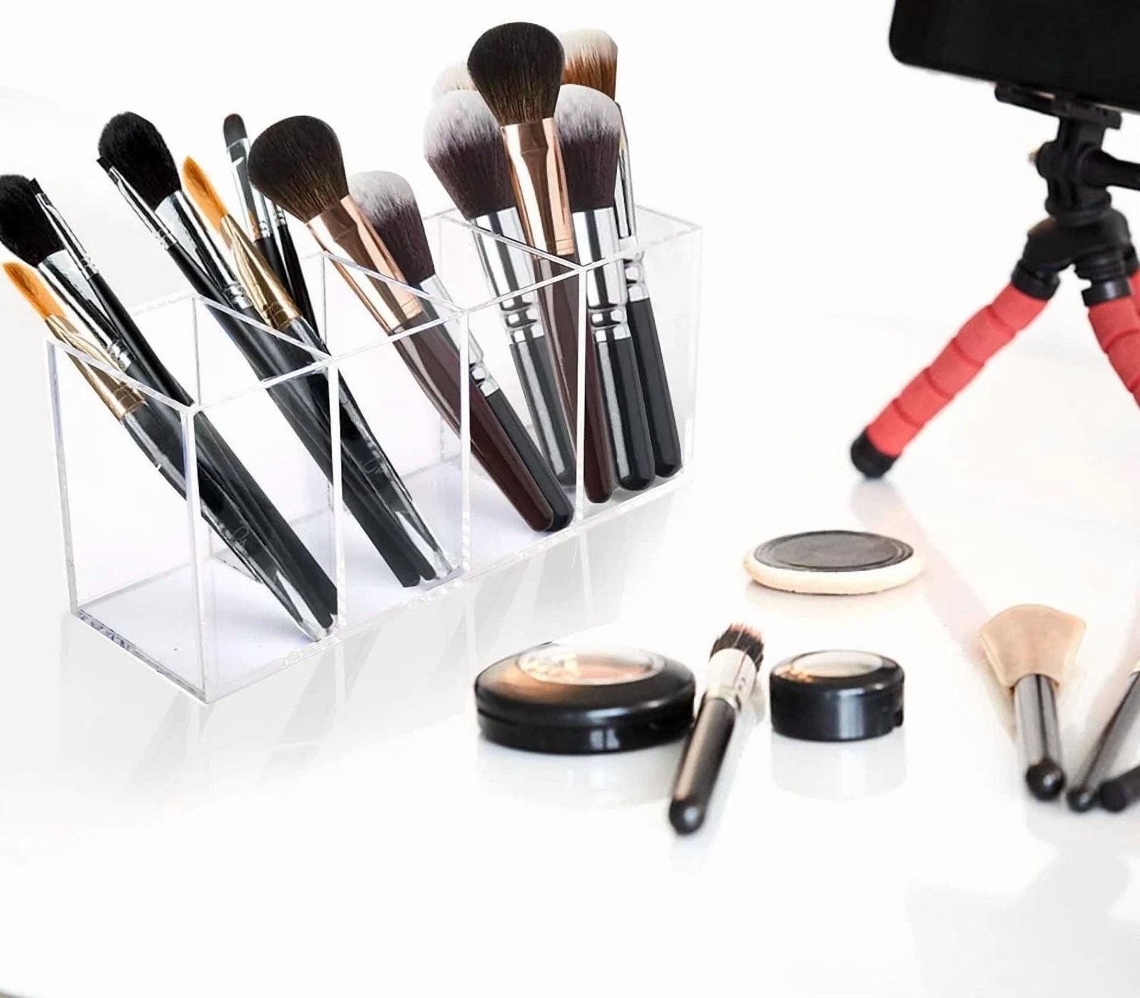 Acrylic Pen Holder 4 Compartments, Clear Acrylic Pencil Holders For Desk, Makeup