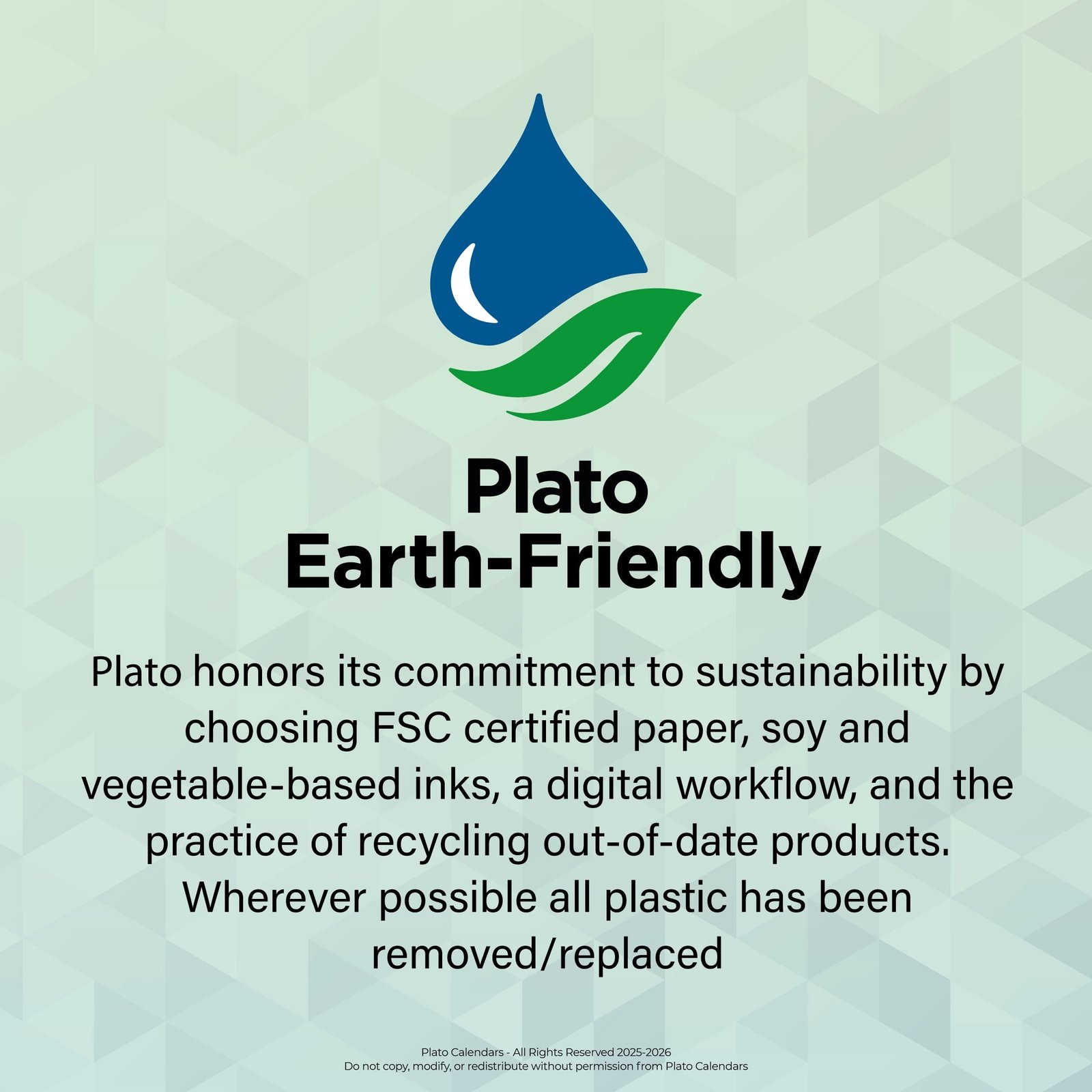 - Plato Earth-Friendly – Manufactured with sustainable materials, including Forest Stewardship Council®-certified paper and soy ink
