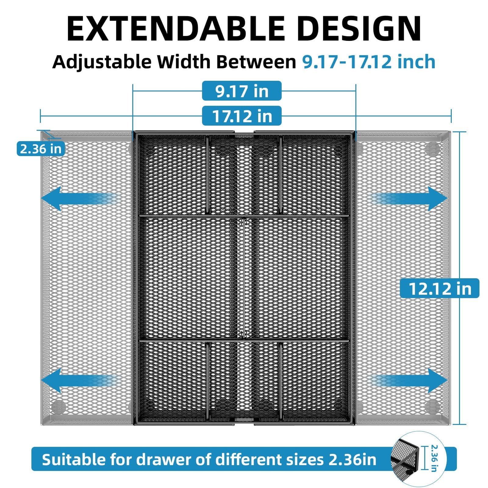 - 【Expandable Drawer Organizer】: Marbrasse newly launched the expandable drawer organizer! The humanized drawer organizer tray owns 2 sliding extension-type compartment which designed to fit any drawer, from 9.17 inches up to 17.12 inches. This drawer organizer specialized to comply with your desk, such a perfect supplies desk organizer must be the best choice for your office accessories