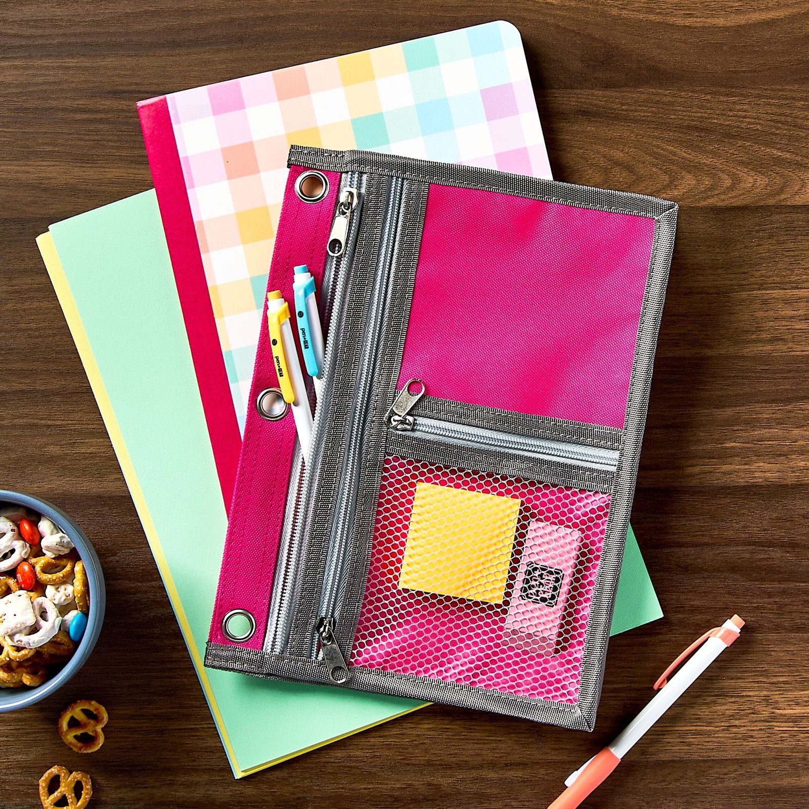 - Keep school supplies and other accessories all in one place with the Pen + Gear Expandable Binder Pouch