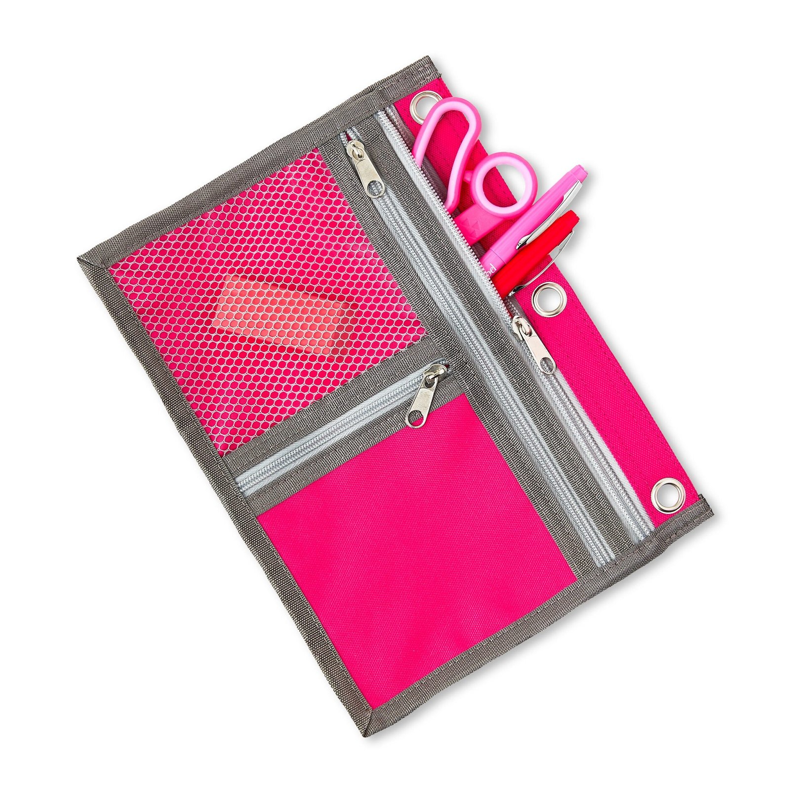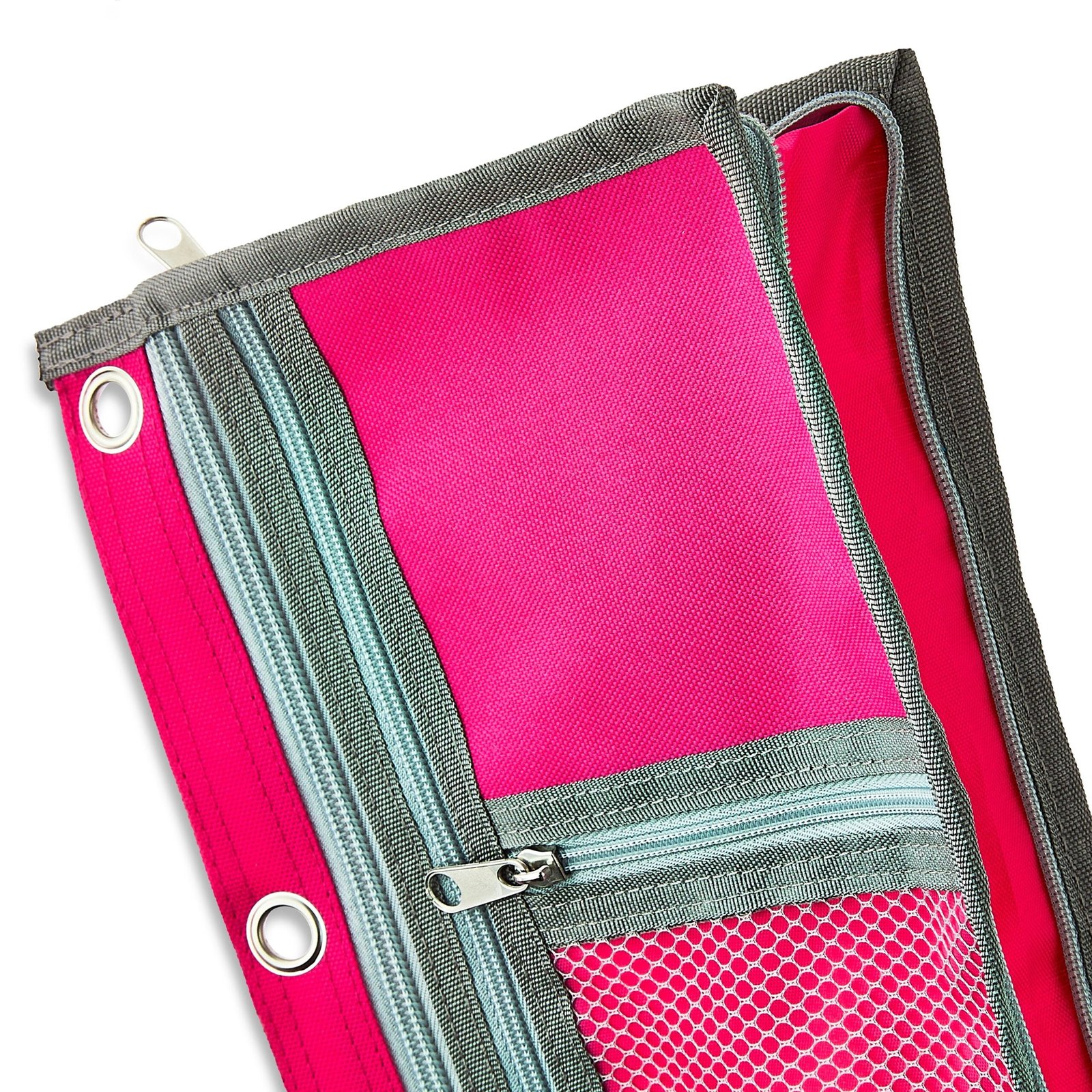 - This pouch features three convenient pockets of different sizes and has a zipper along the sides that lets you expand the binder pouch to fit more supplies