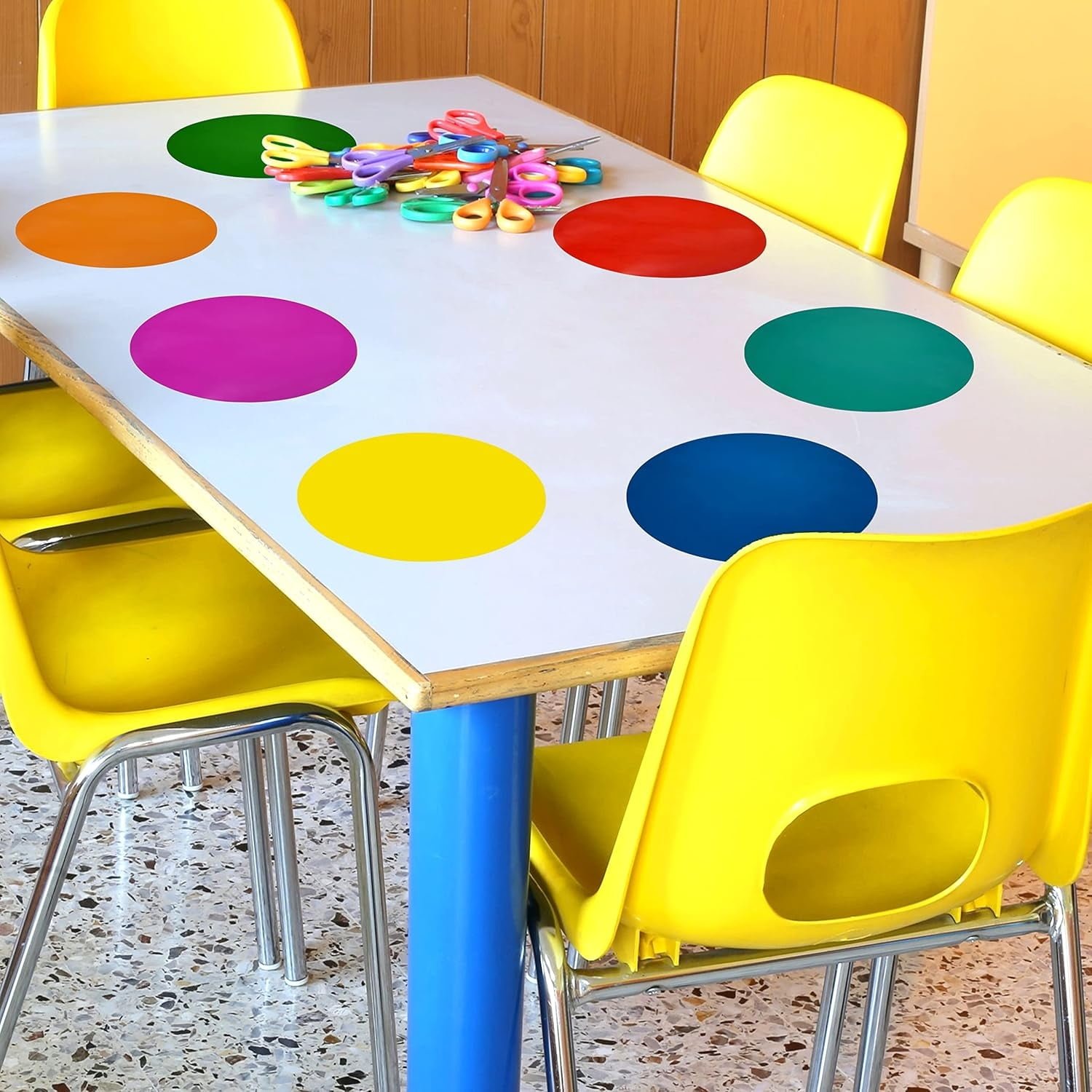- Rip-resistant circle stickers that withstand classroom activities