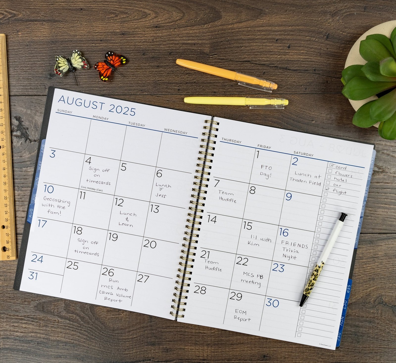 - Resources include a list of holidays, reference calendars, contacts pages, to-do list columns, passwords, events and extra notes pages to accommodate your scheduling requirements